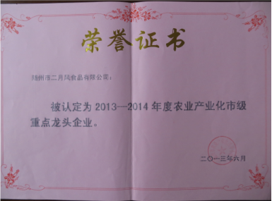 農(nóng)業(yè)產(chǎn)業(yè)化市級重點龍頭企業(yè)
